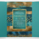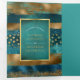 Gold, teal brush strokes, confetti wedding program Tri-Fold invitation