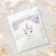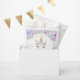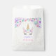 Unicorn First Birthday Party Favour Bag. Cute design in faux glitter gold with floral accent. Purple, teal, pink gold and white. Perfect for a magical 1st bday celebration.