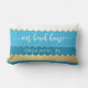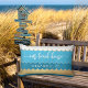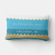 An elegant wave striped pillow in teal, blue, gold and white with your custom texts (optional). Beautiful for a coastal home or beach rental.