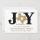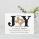 Wishing friends and family Texas-sized joy this holiday season is easy with this design. The "O" in joy is replaced by the shape of Texas with a heart cut out of the centre. Western-style lettering paired with handwritten text. Personalise the front with your family names and the back with your favourite photo. Design allows for you to choose your own colours. Comes in red, green, blue, lavender, aqua, maroon, burnt orange, gold and silver. Matching products available.