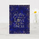 This modern and visually striking birthday greeting card is designed especially for an uncle, inspired by the beauty of a night sky filled with shimmering gold dust and tiny heart details that resemble glowing stars. The deep, rich background creates a bold and celestial atmosphere, while the gold accents add warmth, elegance, and celebration. The front features an artistic gold typography design that blends modern script lettering, decorative text elements, and expressive font styling, creating a refined and contemporary text effect. Inside the card, there is a sample photo that can be replaced or removed, along with space to write a personal birthday message and add your name. The entire card is fully customizable and editable, allowing easy changes to photo, text, and content. This photo greeting card is ideal for celebrating an uncle with a modern, artistic birthday design that feels meaningful, stylish, and timeless.