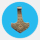 Gold Thor Hammer round stickers are for Thor fans, sticker collectors, roleplay gamers, Norse Heathens, followers of Old Norse ways and customs, history, Scandinavians, collectors of Viking items, Vikings fans, and people of Norse heritage. Gold Thor's Hammer is Steamy Raimon original art.