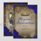 Gold Tiara Butterflies Blue Roses Quinceañera Invitation