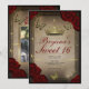Gold Tiara Butterflies Maroon Roses Sweet 16 Photo Invitation