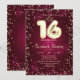 Gold Tiara,Diamonds Burgundy Sweet 16 Party Invitation