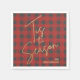 'Tis the Season text in a faux gold foil script and your names in chic lettering are featured on these red and grey buffalo plaid pattern paper napkins, perfect for any holiday occasion. MATCHING items in our store.