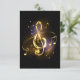 Jewelry, gold, musical treble clef with golden notes and stars on black glowing background.