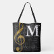 Gold treble clef music note monogram with name tote bag