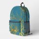 Gold Tree Branches Pattern Blue Custom Name Printed Backpack