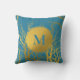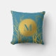 Gold Tree Branches Pattern Blue Monogram Cushion