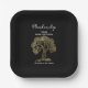 Personalised party accessory for your next family reunion with template text and a gold tree outline and white text on a black background. Personalise all the text, remove the year so you can used extras for next year, or edit using the design tool it to select a typeface style, size, and colour.