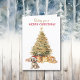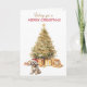 On the front of this Christmas card, an adorable Lhasa Apso Dog wears a red and white Santa hat and sits in front of a Holiday tree. The tree is decorated in gold, and matching gift packages are beneath it. The gold and red text says "Wishing you a MERRY CHRISTMAS". Inside text fields which you may customise to anything you'd like. Be sure to see the other Lhasa Apso themed cards and gifts in our store.