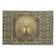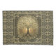 A beautiful ornate design with a gold tree of life with an ornate frame and a heart at the roots. There is a night sky background.