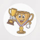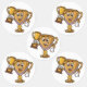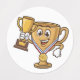 Celebrate the ultimate champion with this playful sticker sheet! Featuring a cartoon-style anthropomorphic gold winner's trophy holding a smaller trophy of its own, this quirky design radiates humor and fun. With bold, colorful graphics and charming details, it’s perfect for adding a touch of victory to notebooks, planners, water bottles, or gifts.