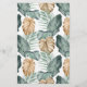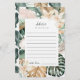 Advice for the bride to be features watercolor lush tropical botanicals of Monstera palm leaves, gold leaves, pink feathers, and cream tropical flora. Coordinates with gold tropical bridal shower invitation.