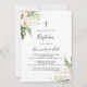 This gold tropical foliage floral baptism invitation is perfect for a modern baby baptism or christening. The design features hand-painted watercolor gold and tropical green foliage with elegant blush flowers.