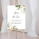 This gold tropical foliage share the love hashtag sign is perfect for a rustic wedding or bridal shower. The design features hand-painted watercolor gold and tropical green foliage with elegant blush flowers.