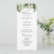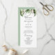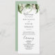 This gold tropical greenery wedding program is perfect for a destination wedding. The design features hand-painted watercolor gold and green palm and banana leaves with pink flowers neatly arranged into beautiful bouquets.