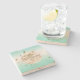 Gold Tropical Palm Tree Mint Aqua Ombre Stone Coaster
