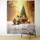 Gold Truck Christmas Tree Holiday Backdrop Tapestry