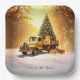 Beautiful Gold Truck Christmas Tree Holiday Paper Plate