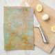 Gold & Turquoise Blue Patina Alcohol Ink Abstract Tea Towel