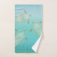 This nautical bath towel set features elegant gold tribal turtles on an aqua background.