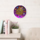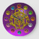 GOLD TWIN DRAGONS PRINTED COLORFUL GEMSTONES LARGE CLOCK