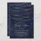 Gold Twinkle String Lights Navy Blue Bridal Shower Invitation