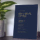 This Gold Type Deco | Dark Navy wedding rehearsal dinner invitation alludes to a minimalist but elegant and royal, traditional and classic wedding. The simple and plain dark, dusty navy blue with the modern antique art deco style gold typography presents a more formal, classy luxury while remaining minimal and versatile for your marriage celebration decor.