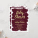 Gold typography gold and burgundy watercolor baby shower party invitation. A modern, simple, elegant and chic faux gold brush hand lettering typography on a hand painted burgundy watercolor brushstrokes background..