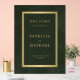 Modern classic dark emerald green and faux gold trendy minimal typography custom acrylic opaque wedding welcome sign template. Suitable for a formal elegant classy wedding.
