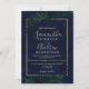 Gold typography Floral navy blue leaf wedding Invitation