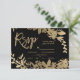 Gold typography leaf floral black rsvp wedding card