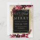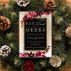 Eat, drink and be merry! A modern, chic and elegant gold typography Floral red burgundy watercolor Christmas party invitation with hand painted red watercolor leaf foliage on a chic yellow gold gradient with white snow and snowflakes. Perfect for Christmas or weddings.