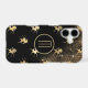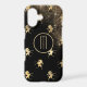 Gold unicorn images rear against a starry night black sky on this phone case. At the centre is a round banner lined in matching gold, with your monogram also in gold. Unique and attractive for anyone.