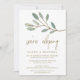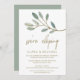 This gold veined eucalyptus elopement reception card is perfect for an elegant post elopement party. The simple and dainty design features faux gold glitter layering the branches of olive green leaves. RSVP cards are sold separately.