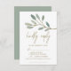This gold veined eucalyptus song request RSVP card is perfect for an elegant wedding. The simple and dainty design features faux gold glitter layering the branches of olive green leaves. Build your wedding guest list and your dance floor song list all at once! This wedding response card conveniently asks guests if they will be able to attend your wedding, and also what song will get them to dance.