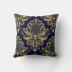 This elegant pillow features an oversized Victorian style gold damask pattern on a deep blue background. Both sides of the pillow have the same image. Gorgeous!