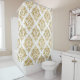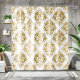 Elegant gold tones vintage floral damasks seamless geometric pattern over customisable white background.