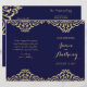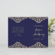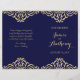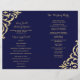 This elegant, vintage wedding program features a delicate gold damask embellishment on a navy blue background. Perfect for a vintage glam or art deco themed wedding. This size is meant to be folded in half like a booklet. Paper does not come with perforation.