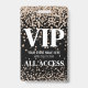 Gold Glitter VIP Event Badge. This elegant event badge is perfect for a variety of celebrations, including Sweet 16 parties, Bat Mitzvahs, New Year’s Eve parties, and more. The design features a black background with a gold confetti glitter gradient at the top and bottom, creating a festive and glamourous look. The same design is printed on both sides for consistency. The badge includes bold serif fonts mixed with simple typography, allowing space for the event name, date, and "All Access Pass." You can customise the text and even change the background colour to match your event’s theme. This badge adds a touch of sophistication and makes your guests feel truly special!