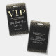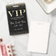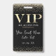 This glamourous VIP all access pass badge features a sophisticated design on a black background. The VIP title is printed in a gold foil style font, followed by the event title. A band of gold glitter diamonds accents the top and bottom portions. The party or event location and time are printed on the back. It's perfect for a birthday party, sweet 16, bridal shower, or other elegant celebration.