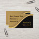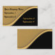 Professional custom, unique and classy business cards with gold swirling 3d look wave design with black stylish text and black background with gold text. Two sided with room to add more text.