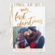 Gold Waves on White Our First Christmas, Photo Holiday Card
