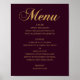 Gold wedding dinner menu. Burgundy elegant simple Poster