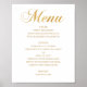 Gold elegant wedding menu. Printed poster doesn't contain real foil or sparkles. Suitable for birthday, anniversary and any other party. Contact me, please, if you need additional items.