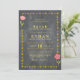 This romantic gold navy blue Mr and Mrs wedding invitation is perfect for a simple wedding. The modern classic design features fancy swirls and whimsical flourishes with gorgeous elegant hand lettered gold foil pressed typography on a dark blue background.