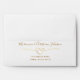 Simple, elegant, chic white wedding invitation 5x7 envelope with return address, gold rope heart and modern abstract rose gold geode gemstone inside.