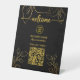 Gold Welcome Sign With QR Code For Menu Pedestal Sign